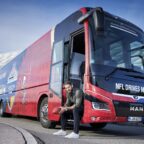 Bus de tourisme MAN Lion’s Coach pour conduire les footballeurs à l’Allianz Arena de Munich pour le premier match officiel de la NFL en Allemagne