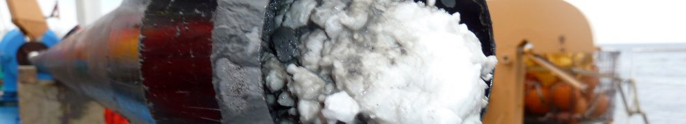 Especially when a pipeline is idle for a longer time at low temperatures, hydrate plugs can form, similar to the methane hydrate core shown in the picture. Image: Bill Schmoker (PolarTREC 2010), © ARCUS Polar Media Archive